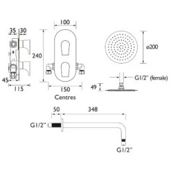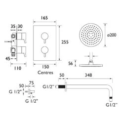 Flova Fusion Thermostatic Mixer With GoClick Control Slide Rail Kit