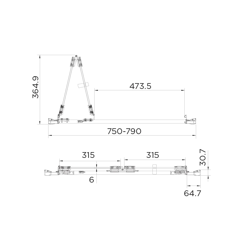 Adjustment 750mm minimum – 790mm maximum
