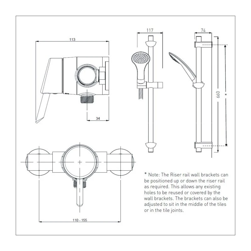 • Acute Thermostatic Surface Mounted Shower Valve with Adjustable Riser