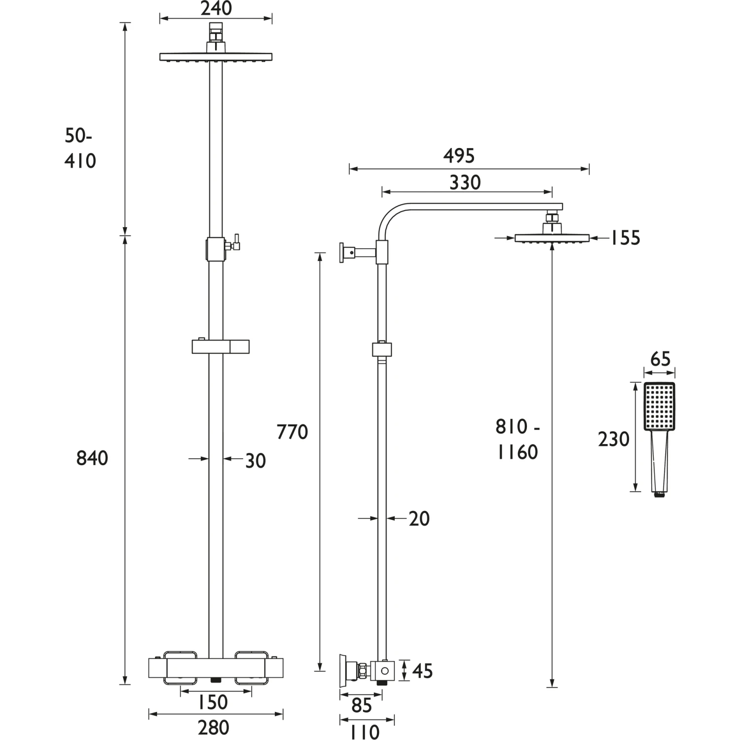 Includes hose, height adjustable riser rail, a rub-clean anti-limescale shower rose and single function handset