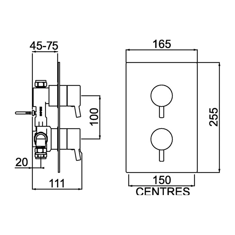 Prism Recessed Thermostatic Dual Control Shower Valve Chrome
