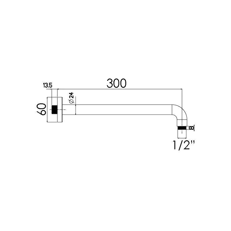 300mm Fixed Wall Shower Arm