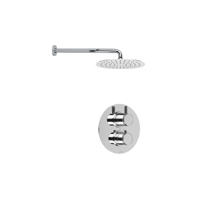Consists of thermostatic shower valve, Ultra Slim 200mm fixed head and 300mm wall arm
