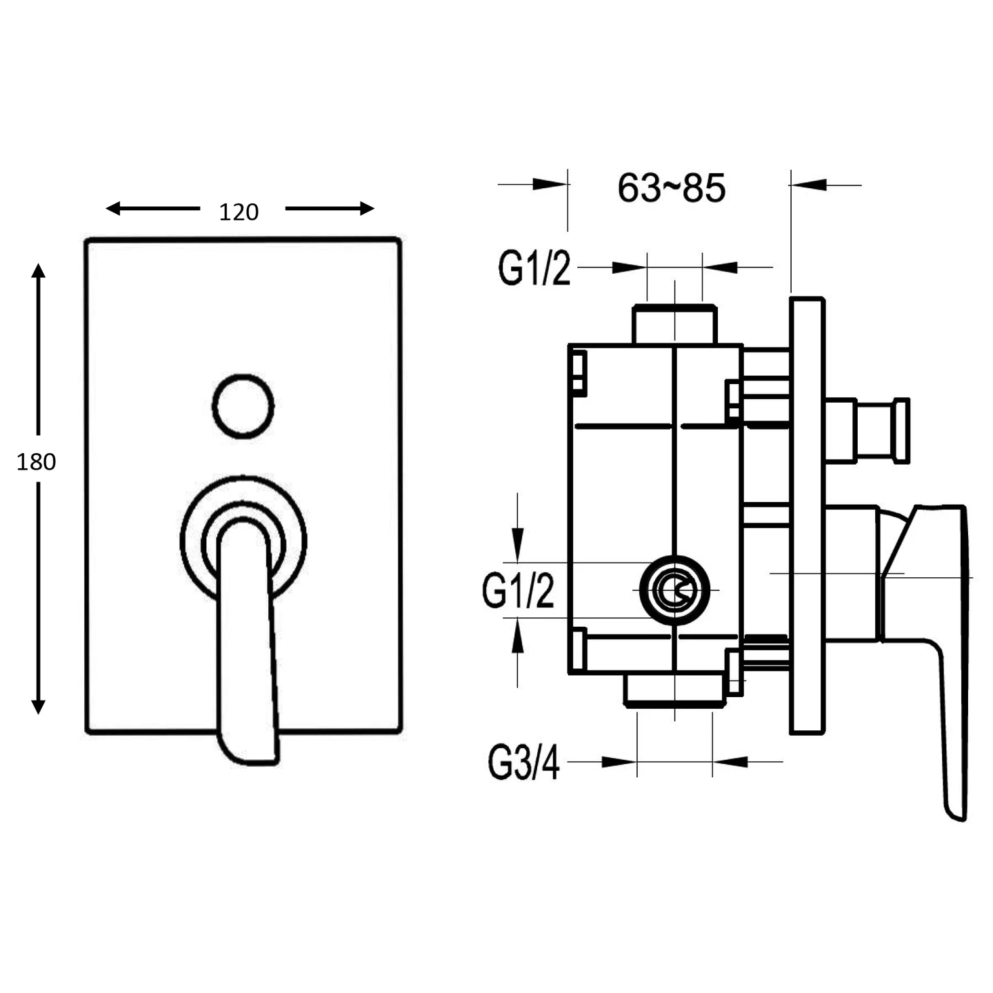 Cascade concealed 2-outlet manual mixer