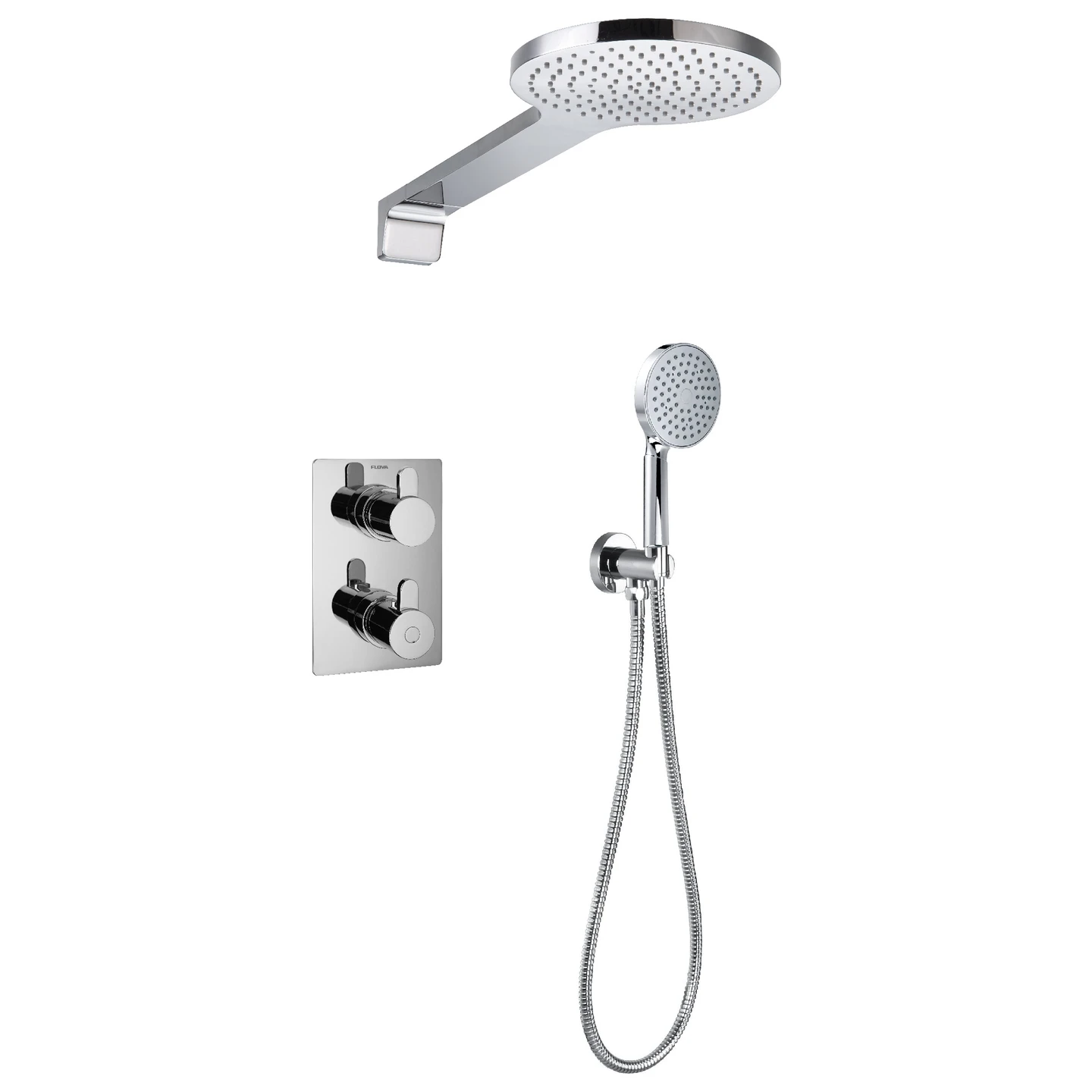 Essence thermostatic 2-outlet shower valve with fixed head and handshower kit