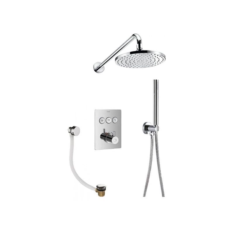 Levo GoClick thermostatic 3-outlet shower valve with fixed head, handshower kit and bath overflow filler