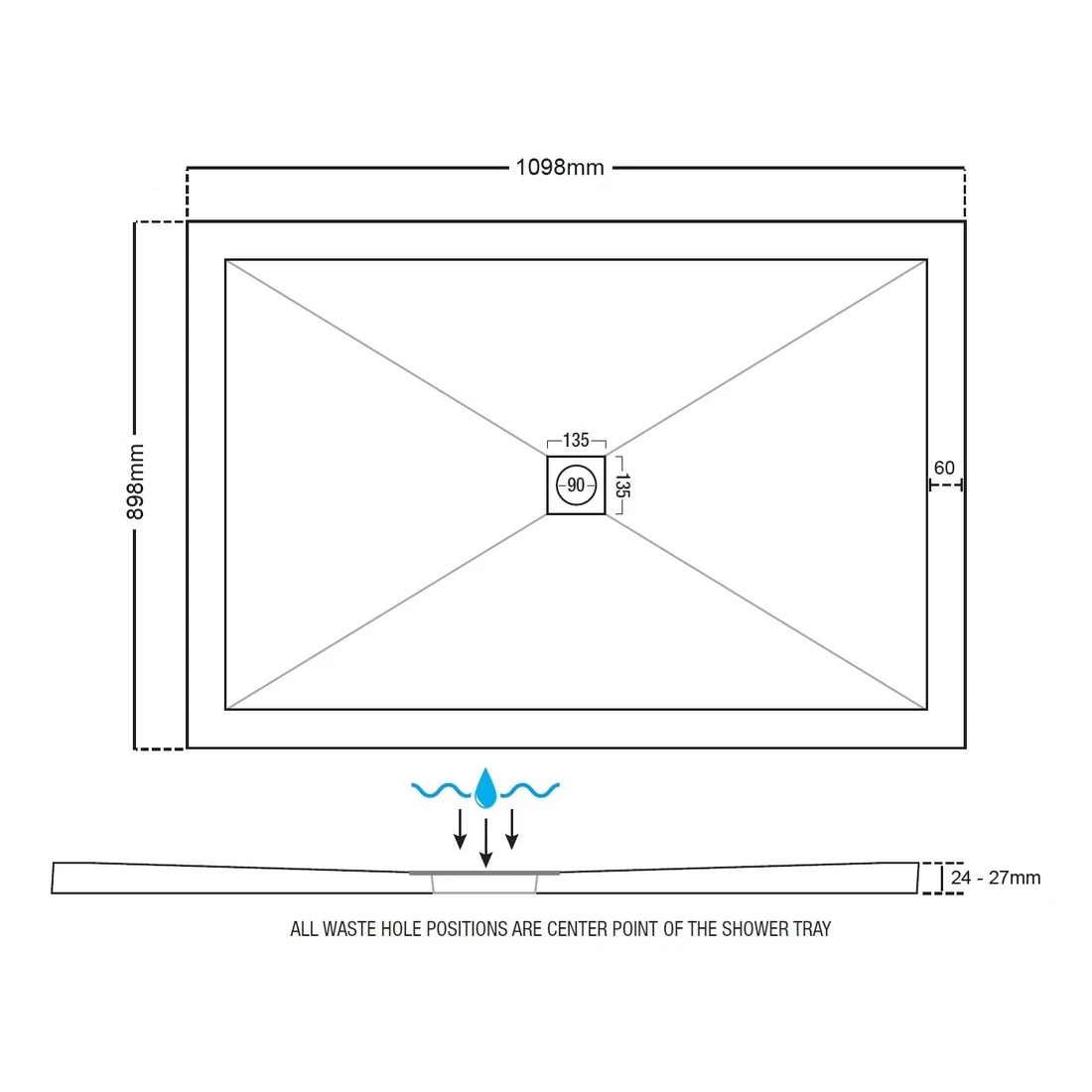 Slimline Rectangle Shower Tray 1100 x 900mm