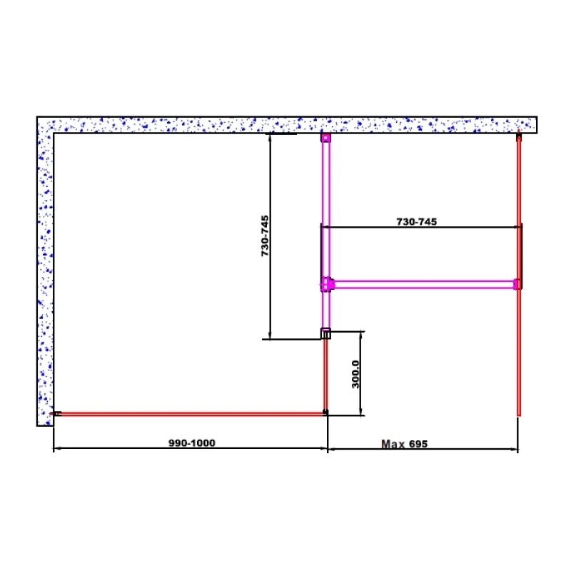 Aquaglass Black L-Shape 1000mm walk-in 8mm clear glass with 300mm return panel