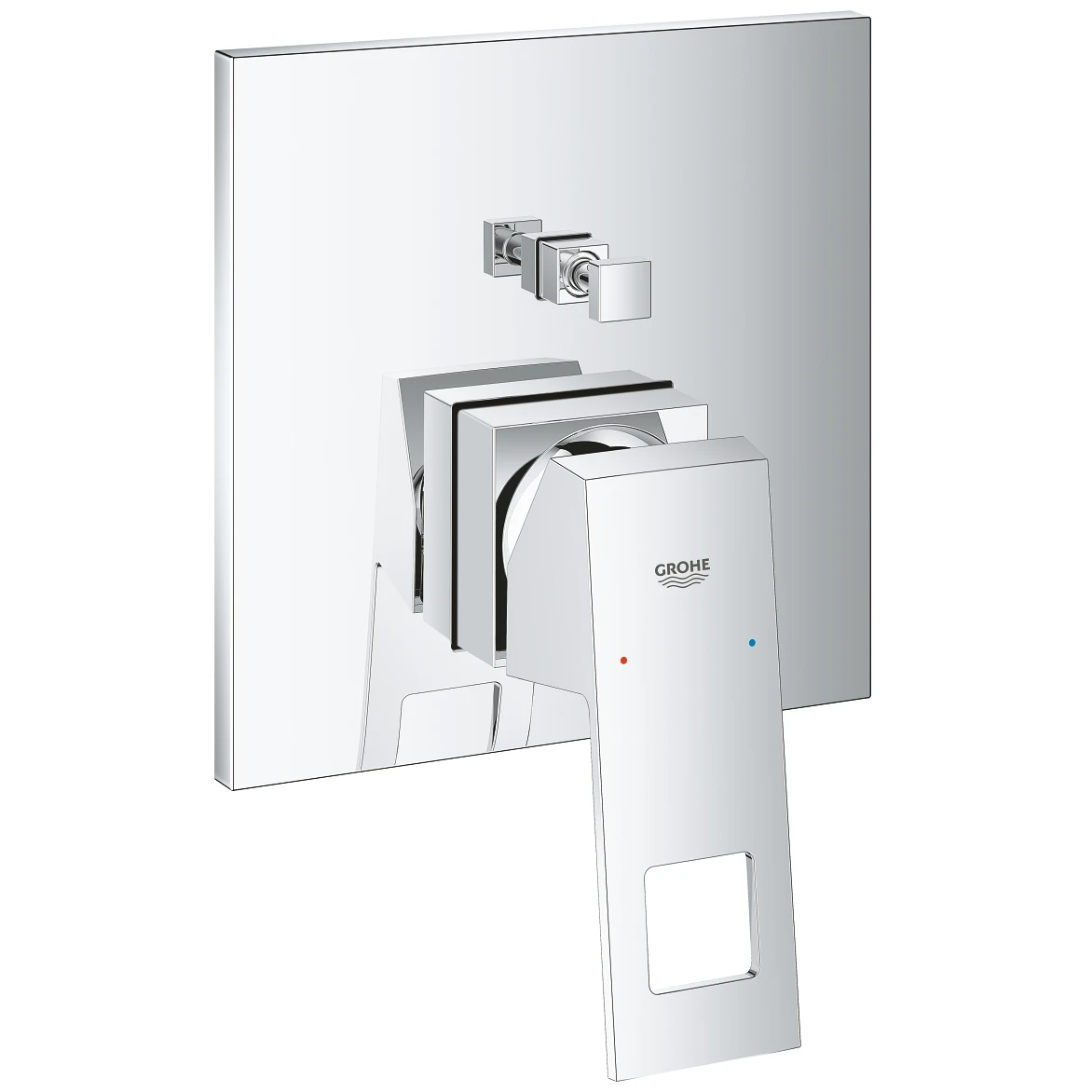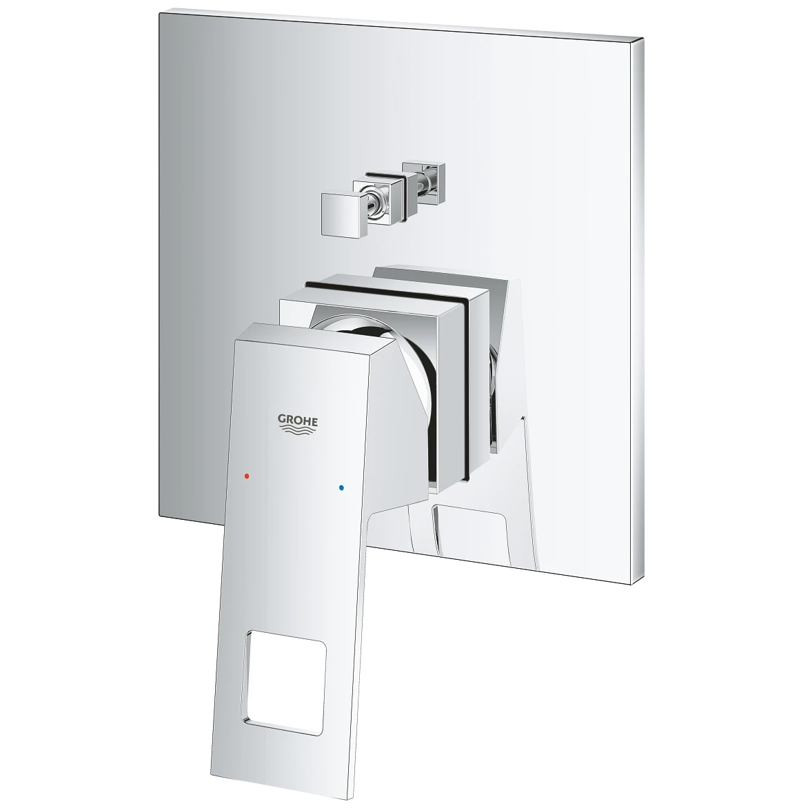 The Grohe Eurocube single-lever mixer trim set features a modern, clean-lined distinctive look suitable for any bathroom. The tactile design invites you to interact, with a metal escutcheon and lever offering a feeling of solidity, and the slim profile – the wall plate has a 158mm diameter and a depth of only 10mm – will appeal to design purists. The sleek 2-way diverter projects only 43mm and allows you to switch effortlessly between head and hand shower, or shower and bath spout. Thanks to the Grohe SilkMove ceramic cartridge, water temperature and volume are easy to control with a lever that moves super smoothly. The hardwearing, lustrous Grohe StarLight chrome finish will look pristine for years to come. This product must be installed in combination with the Grohe rapido smartbox (35600000).