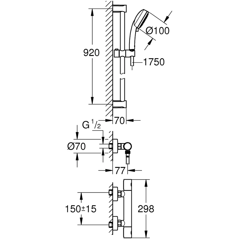 Consisting of Grohtherm 800 Cosmopolitan thermostatic shower mixer 1/2β³ (34765 000)