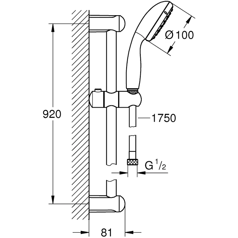 Tempesta 100 shower rail set 2 sprays 27646 Chrome