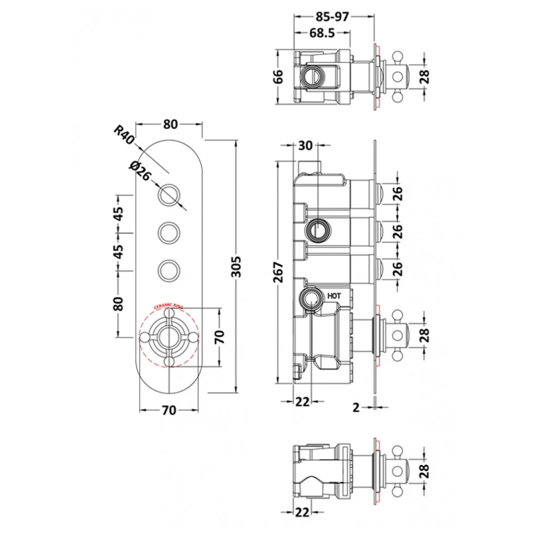 In the event of hot or cold water failure, the valve will shut down as per the relevant standard