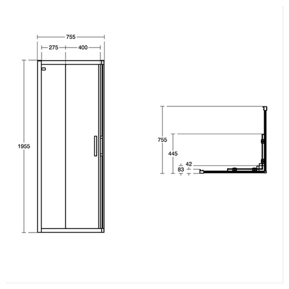 Connect 2 800mm Corner Entry Enclosure with Idealclean clear glass, bright silver finish