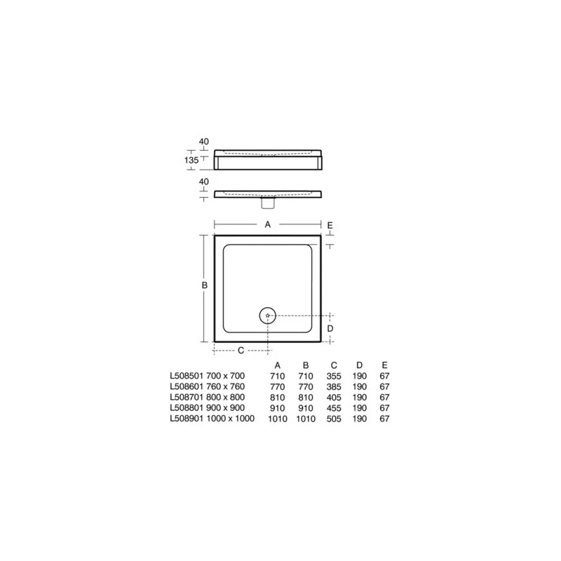 Simplicity 800mm x 800mm flat top low profile Idealite shower tray including waste