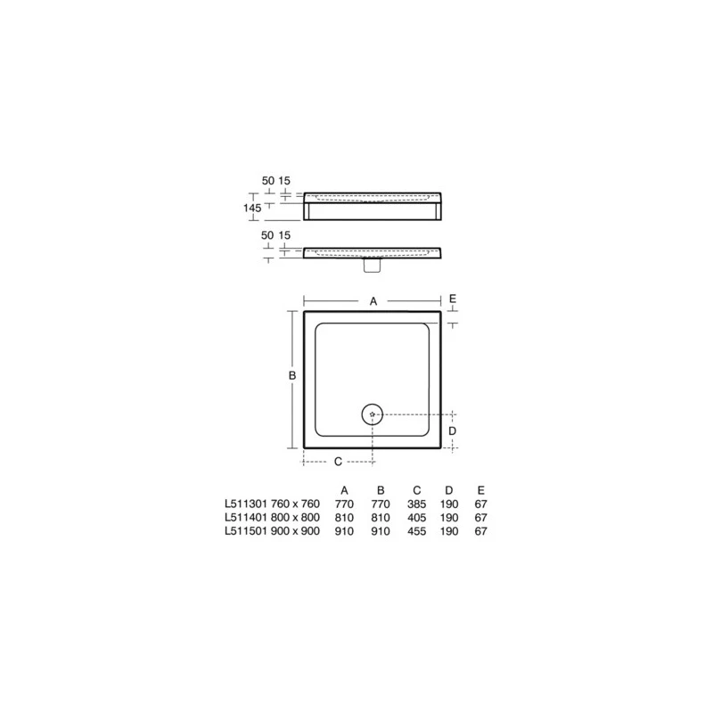Simplicity 800mm x 800mm low profile Idealite shower tray including waste with 4 upstands