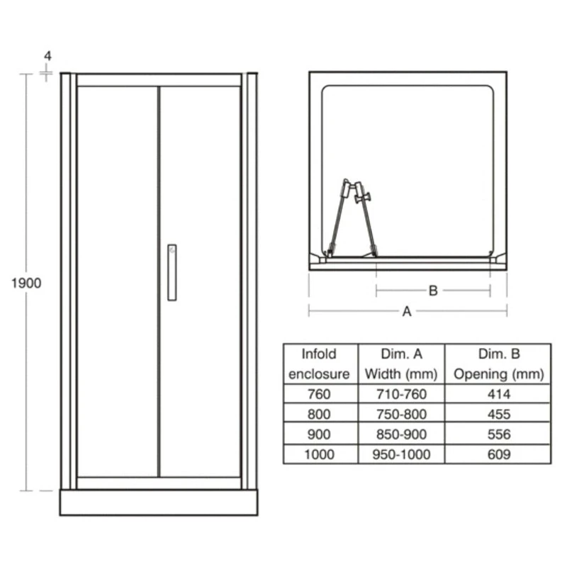 Synergy 900mm Infold door, IdealClean clear glass