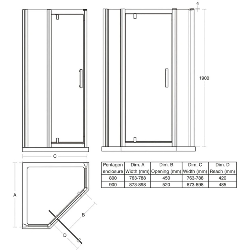 Synergy 900mm Pentagon Enclosure, Idealclean clear glass
