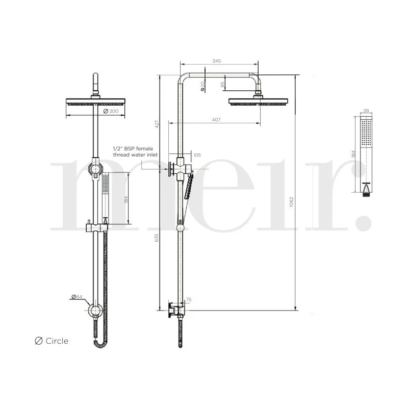 Round Combination Shower Rail with 200mm Head and Single Function Hand Shower