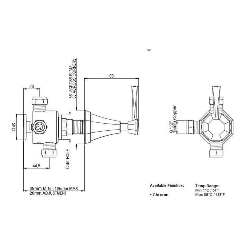 Deco Concealed 1-Inlet, 2-Outlet Shower Diverter Tap with Lever Handle, Chrome