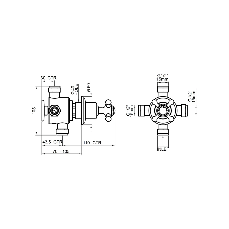 Georgian Concealed 1 Inlet, 3 Outlet Shower Diverter Valve with Cross Handle, Chrome