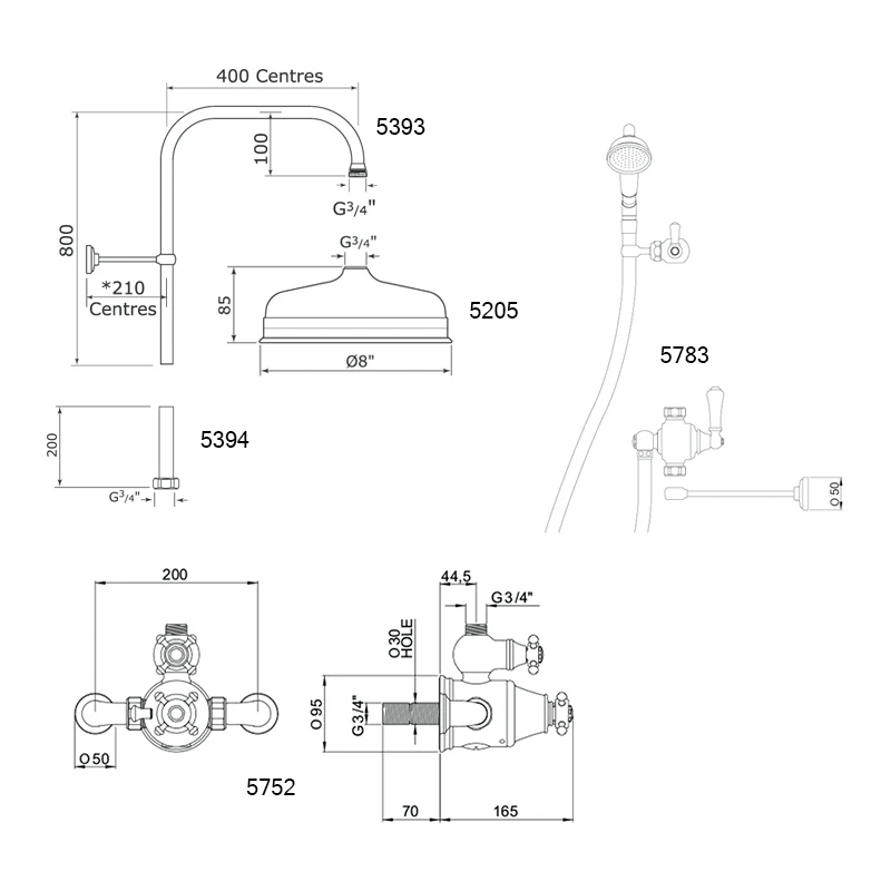 Georgian Shower Set 2 with 8″ Shower Rose, Chrome
