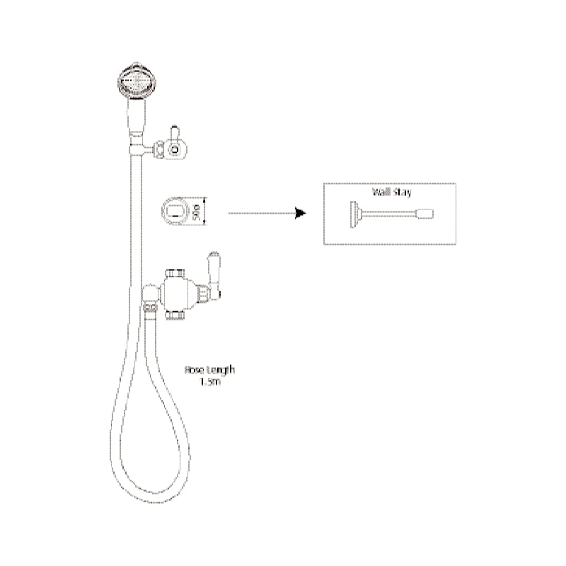 Riser diverter, handshower, hose, sliding bracket and wall stay