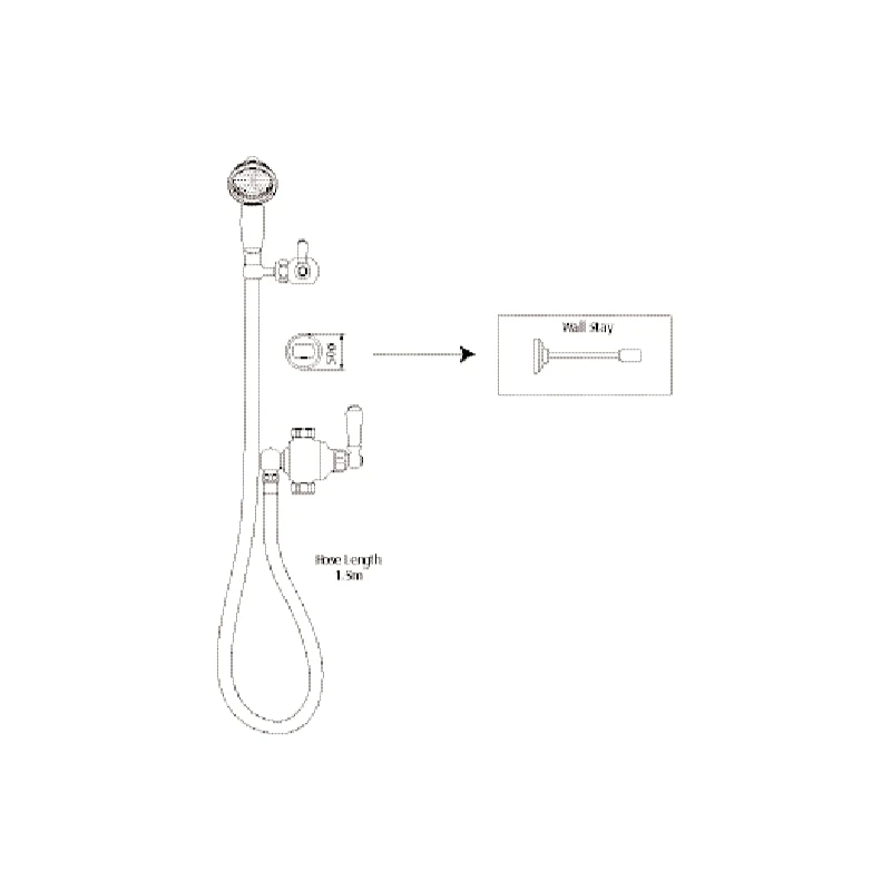 Riser diverter, handshower, hose, sliding bracket and wall stay