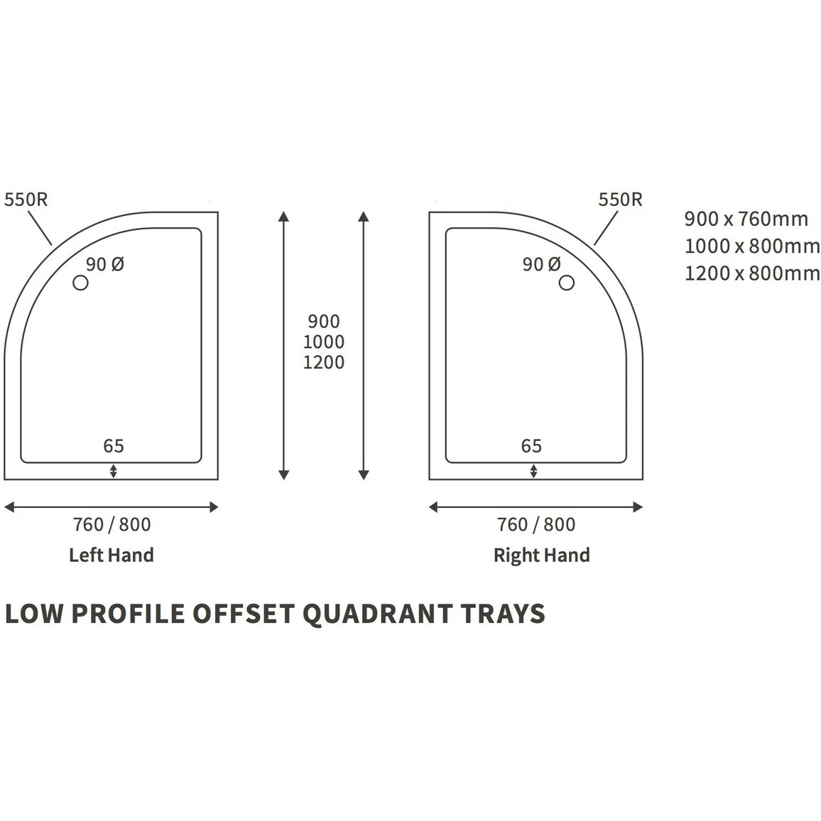 Refresh 40mm Low Profile 1200x900mm Offset Quadrant Tray and Waste, Right Hand