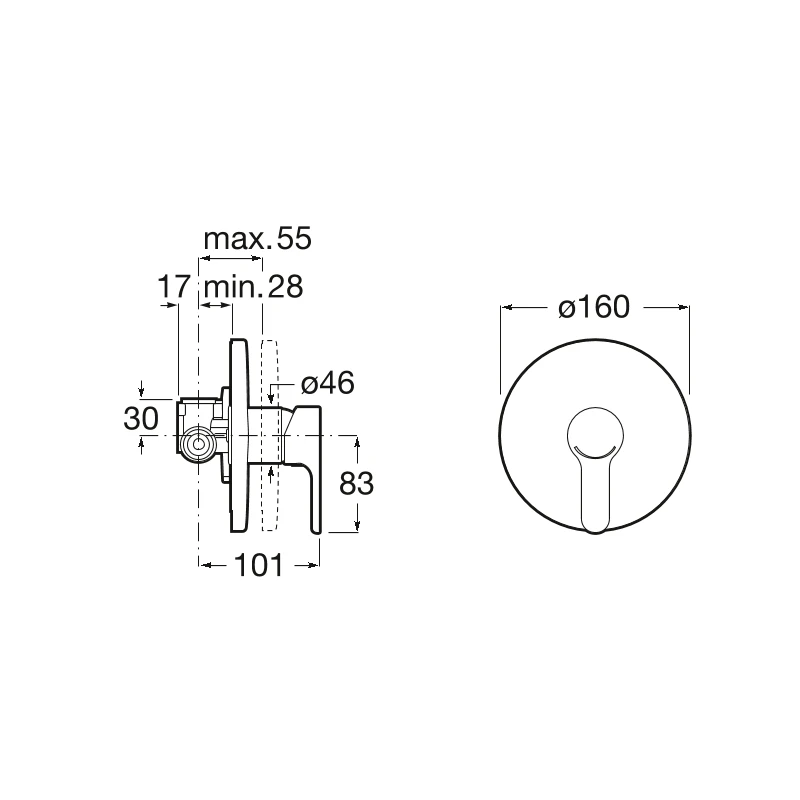L20 Built-In Bath or Shower Mixer, 1 Outlet