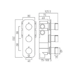 Altitude Tablet 3 Outlet, 3 Handle Vertical Concealed Thermostatic Shower Valve with All-Flow Function