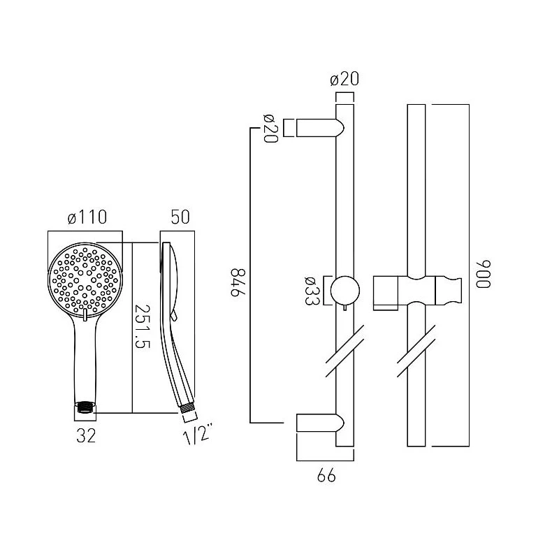 900mm overall rail length